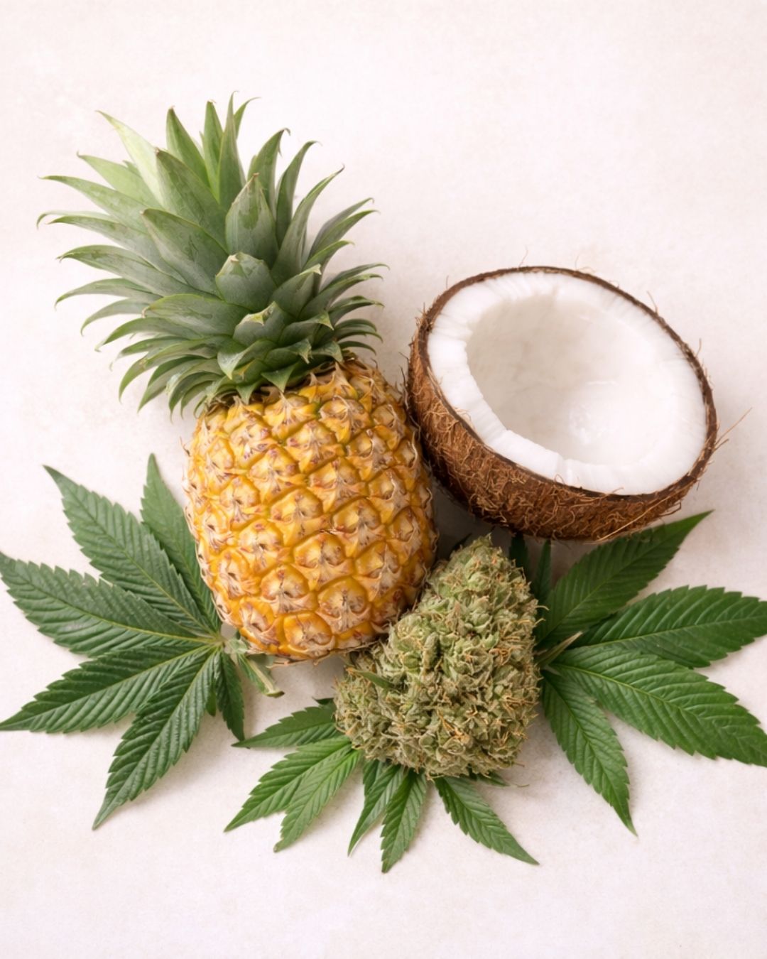 Aceite corporal natural de cannabis, elaborado con aceite de coco, flor de CBD, piña y coco. Nutre profundamente la piel, dejando una sensación suave, luminosa y un aroma tropical envolvente.